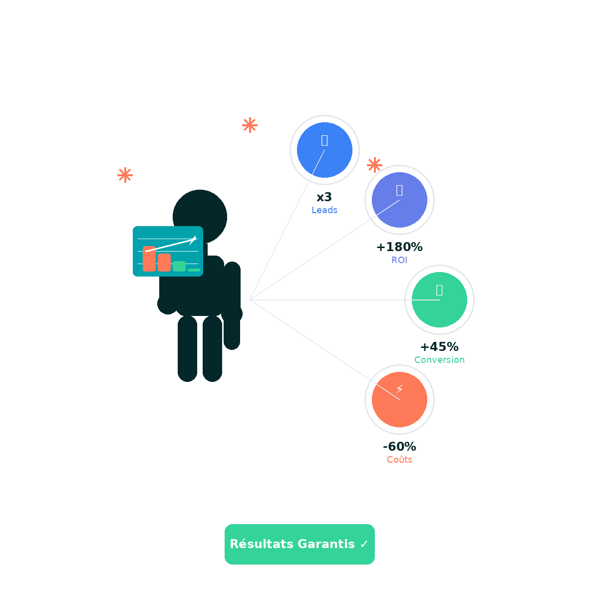⏵ Campagnes rentables : Google Ads, Meta Ads, LinkedIn avec ROI mesurable